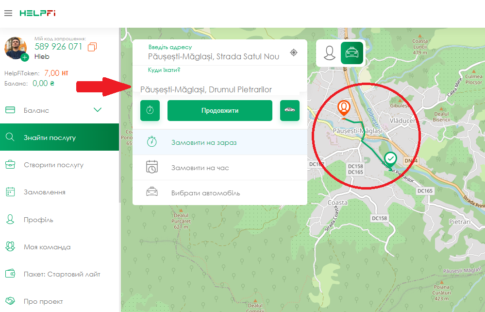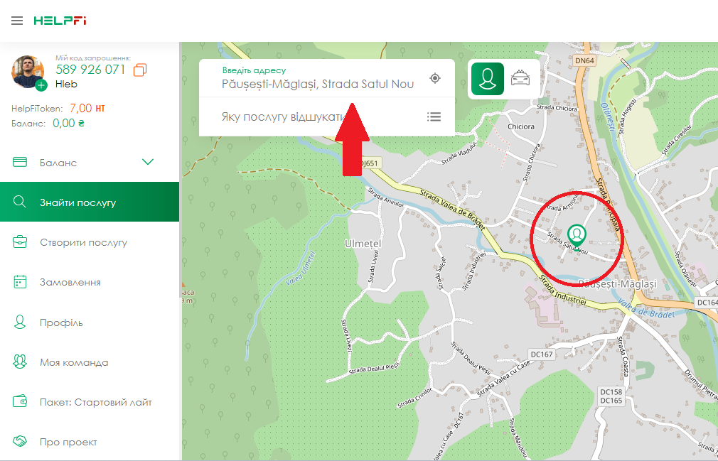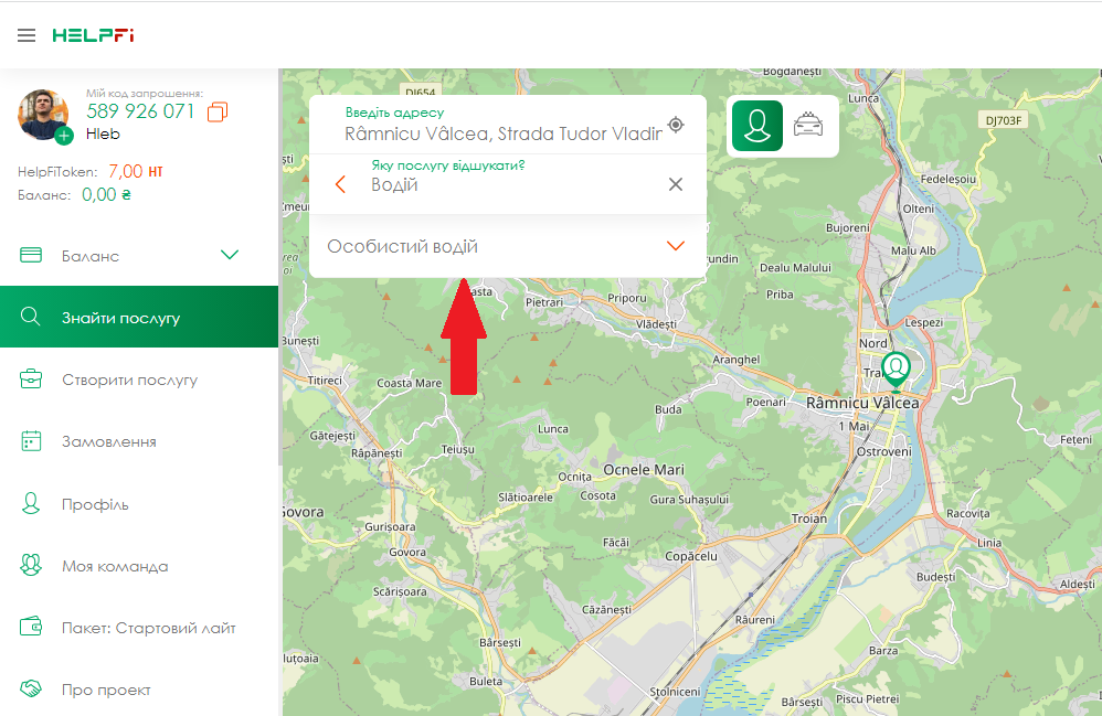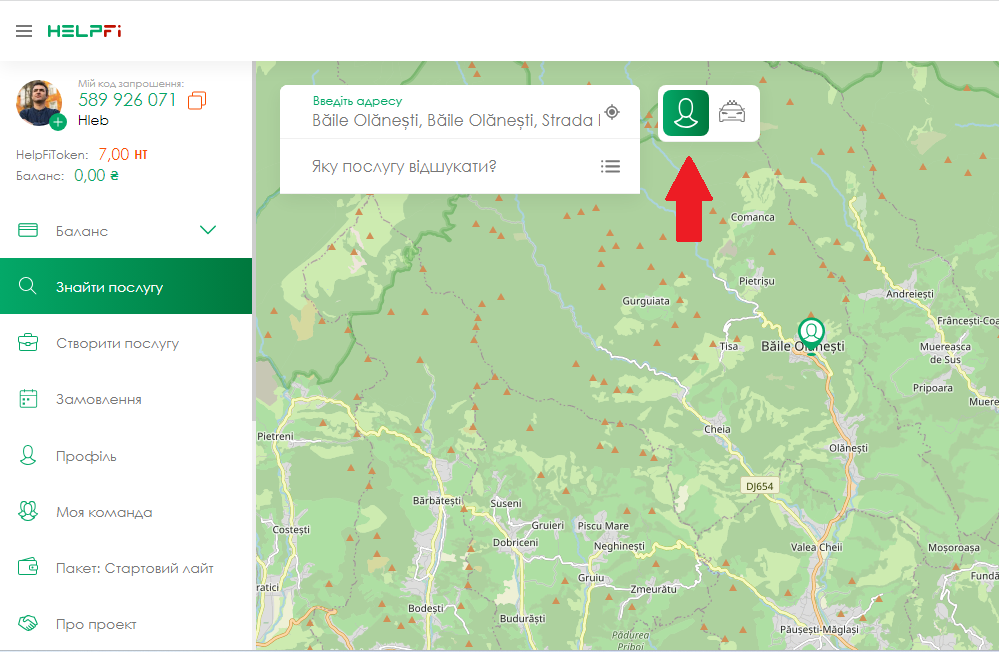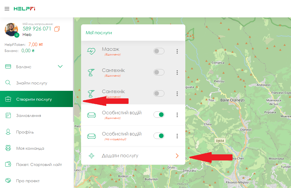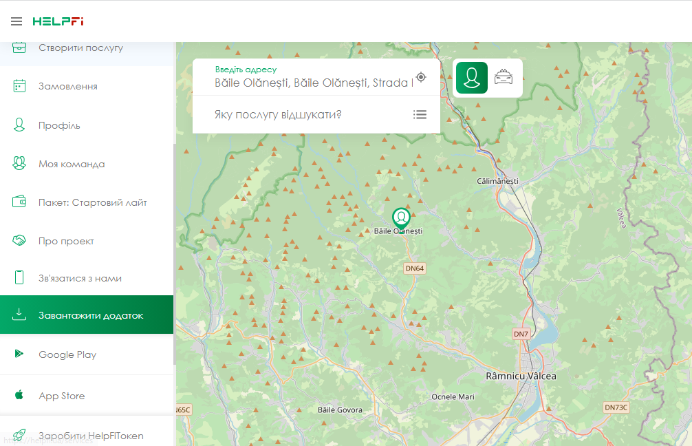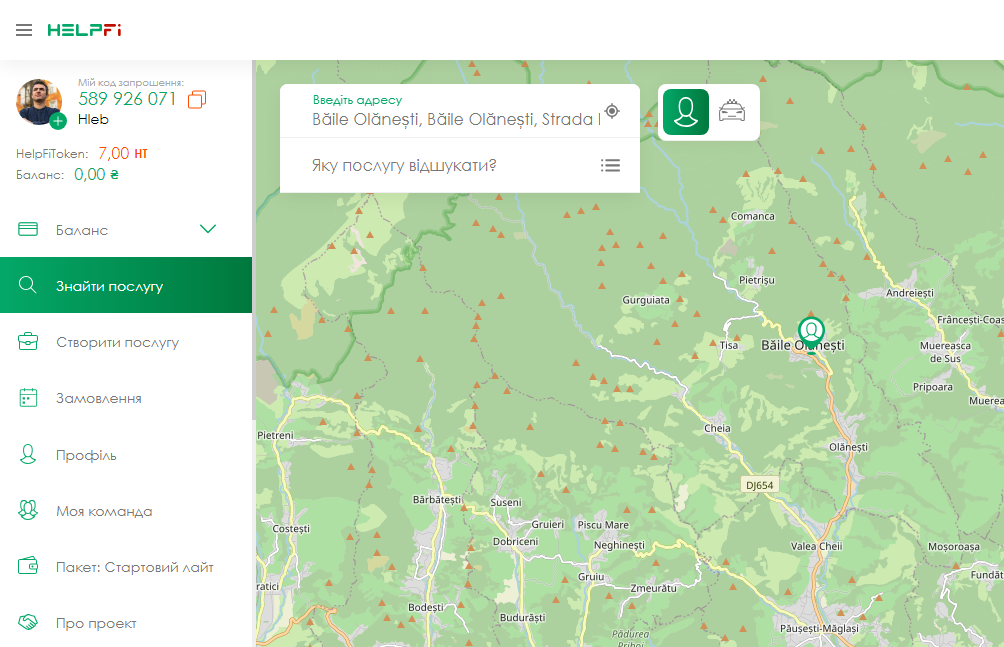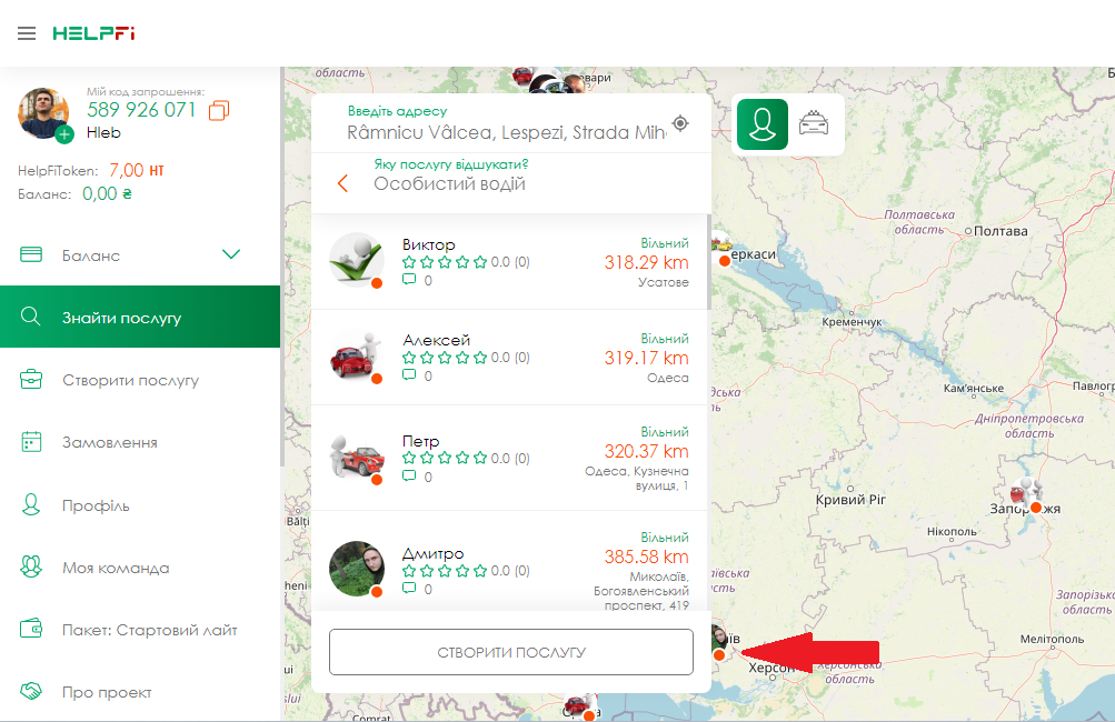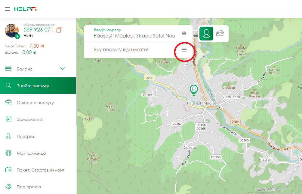 Виконавцем може стати будь-яка людина, від 18-ти років. Якщо ви надаєте послуги і хочете збільшити кількість клієнтів, HelpFi - допоможе вам у цьому! Після успішної реєстрації на сайті або в додатку, ви потрапляєте на головну сторінку додатку! Праворуч у вас розташована карта, зліва меню.