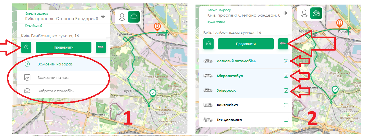 Угорі екрана розташована клавіша, де вам потрібно вибрати, чи хочете ви замовити таксі або інші види послуг.