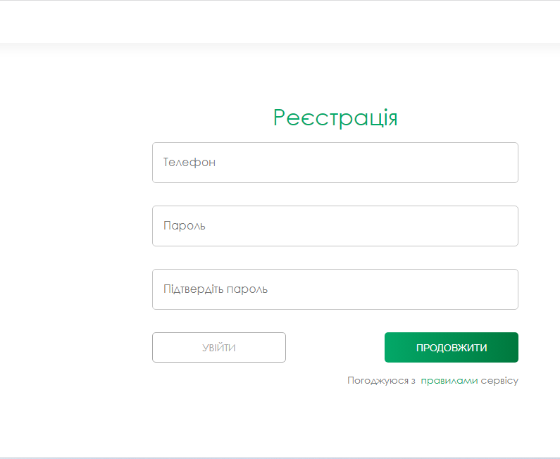 У вікні, що відкрилося, введіть свій номер телефону і пароль, після чого натисніть кнопку "Продовжити".